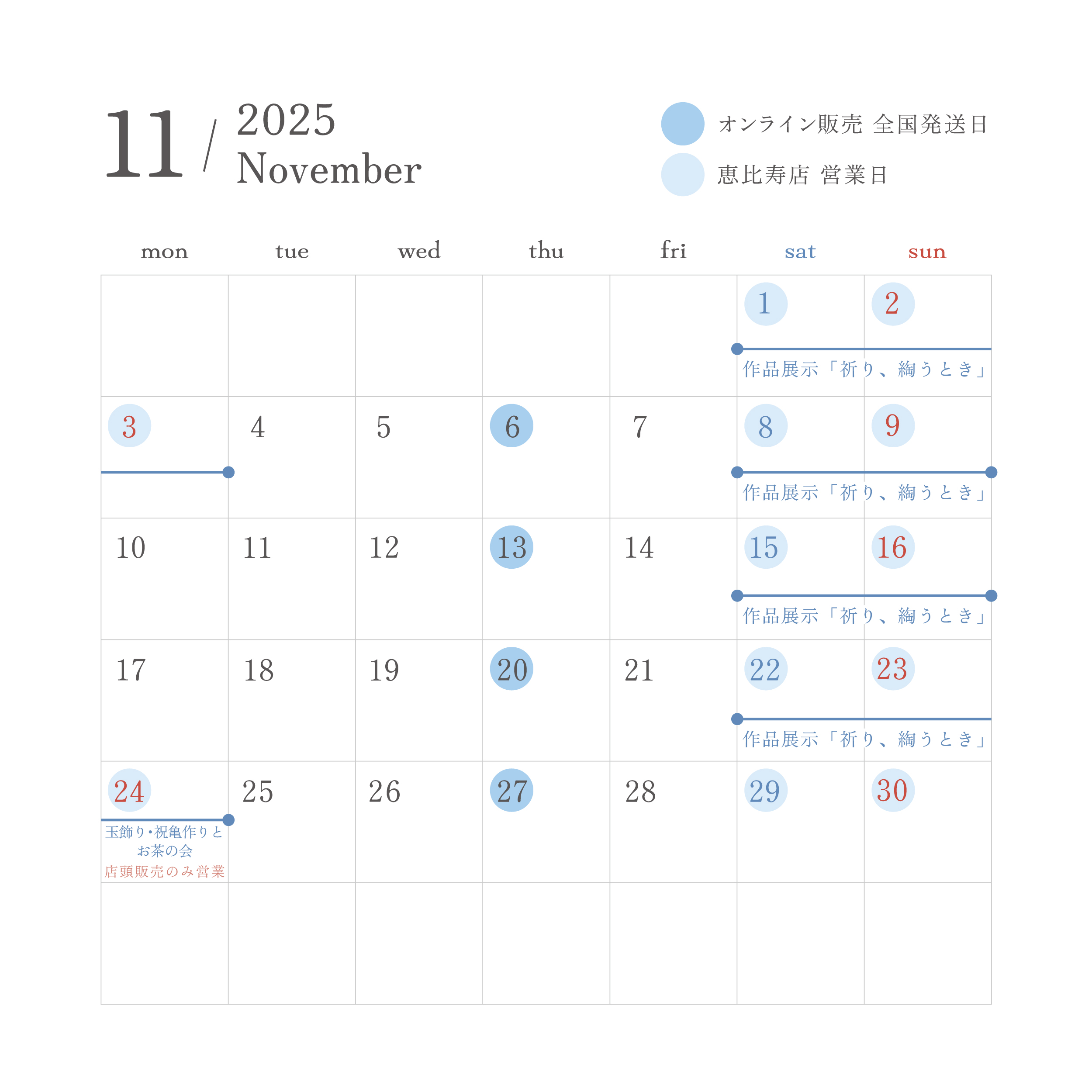 11月 営業スケジュール